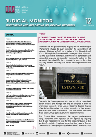 - N12.T1 – Constitutional Court at risk of blockade, authorities did not allow the election of Mirjana Vučinić as Constitutional Court judge