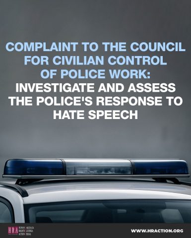 COMPLAINT TO THE COUNCIL FOR CIVILIAN CONTROL OF POLICE WORK: INVESTIGATE AND ASSESS THE POLICE’S RESPONSE TO HATE SPEECH
