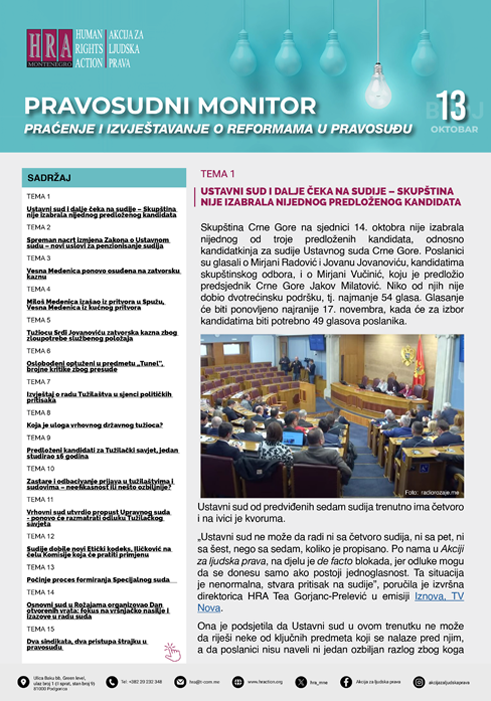 Pravosudni monitor br. 13 – Praćenje i izvještavanje o reformama u pravosuđuBilteni, Bilteni - Pravosudni monitor, PUBLIKACIJE0
