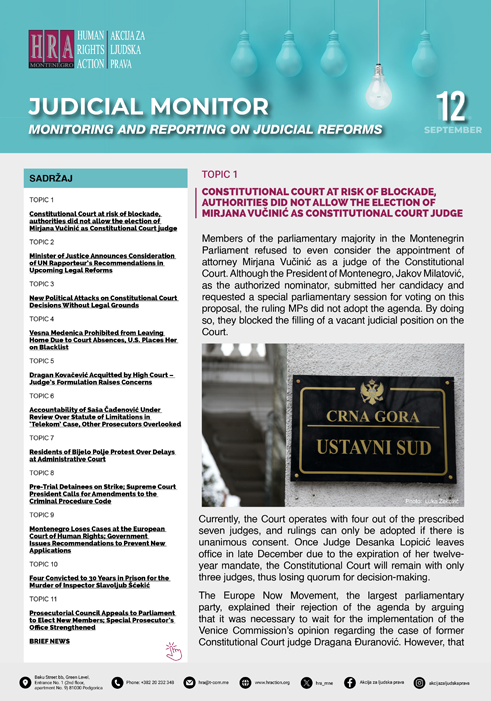 Number 12: Judicial Monitor – Monitoring and Reporting on Judicial ReformsHRA NEWSLETTERS, Newsletter, Press releases all, Publications0
